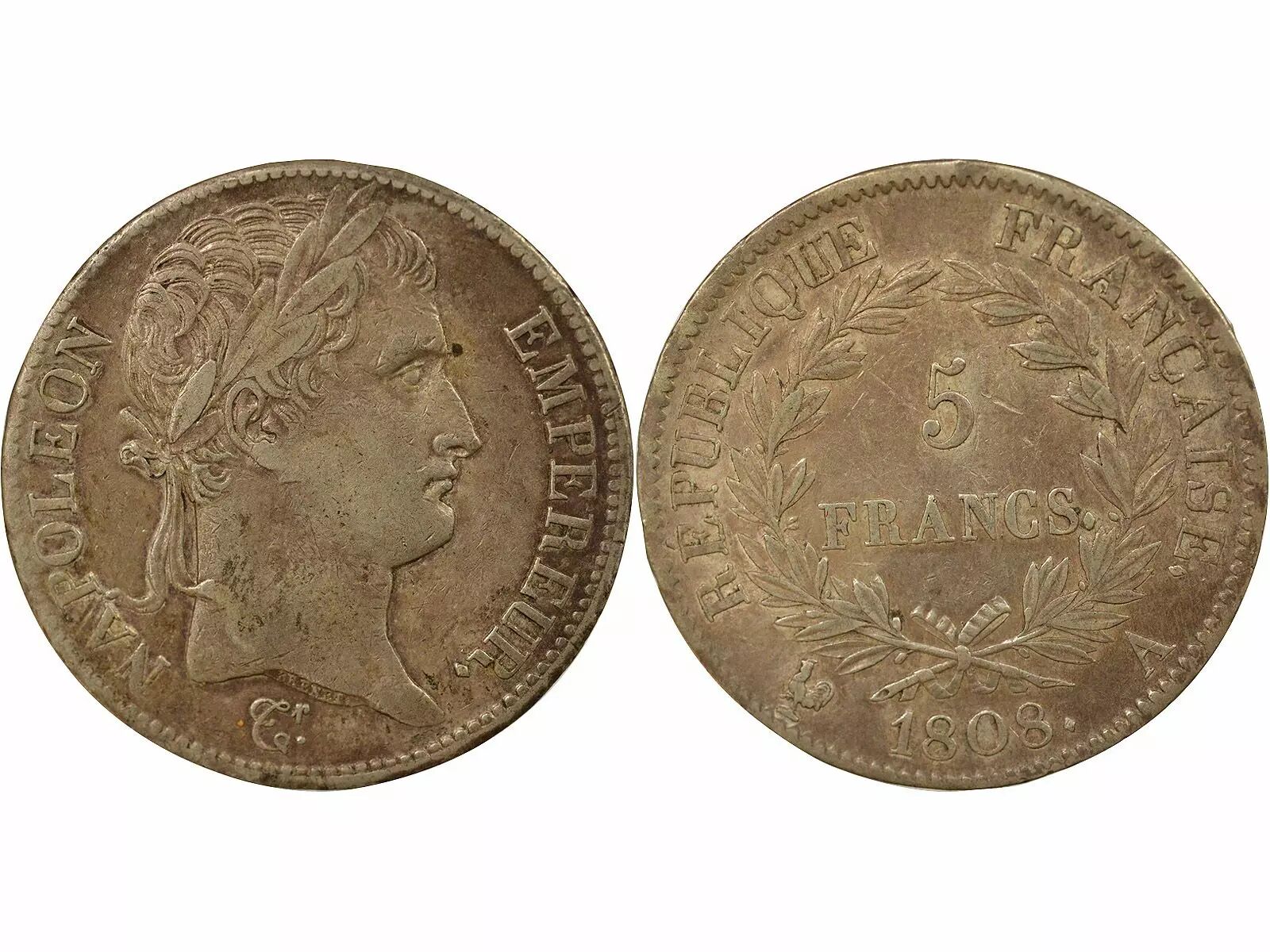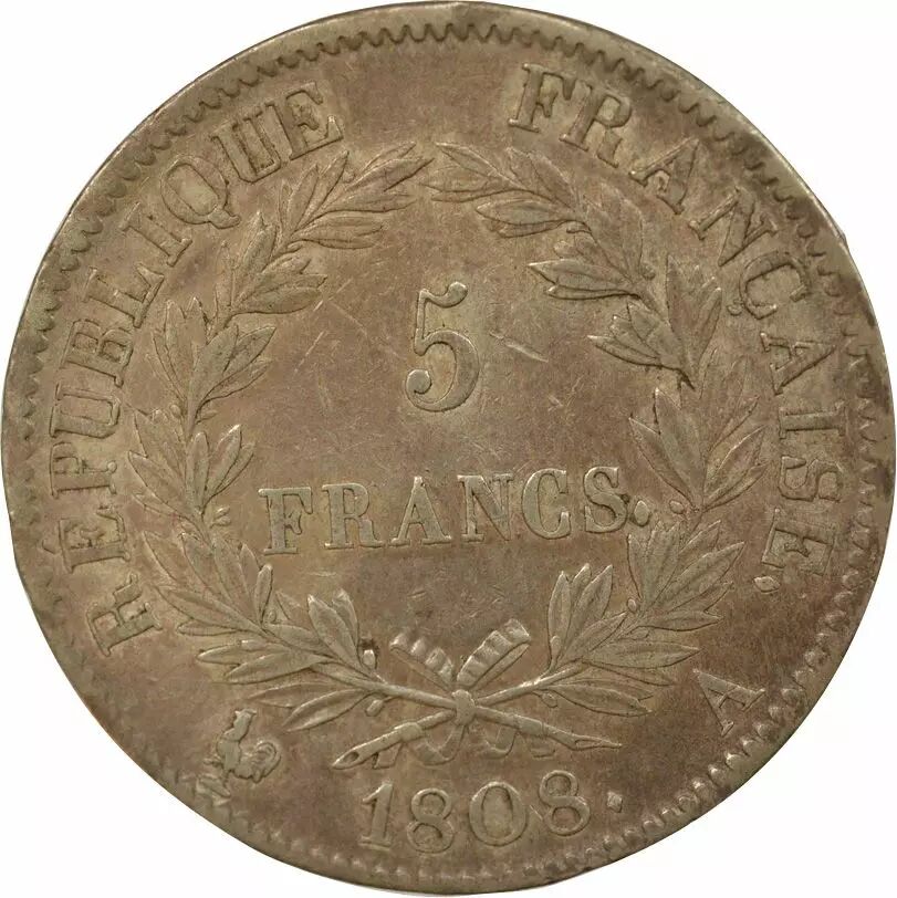 Coin France Napoleon I - 5 Silver Francs, Laureate Head, Republic - 1808 A Paris