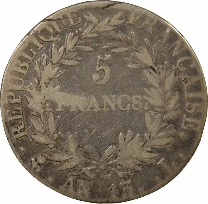 Home > French coins (470 à 2002) > Modern Currencies (1789 to 2002) > 5 Francs > France Napoleon I - 5 Silver Francs, Revolutionary Cal. - Year 13 IL Bayonne