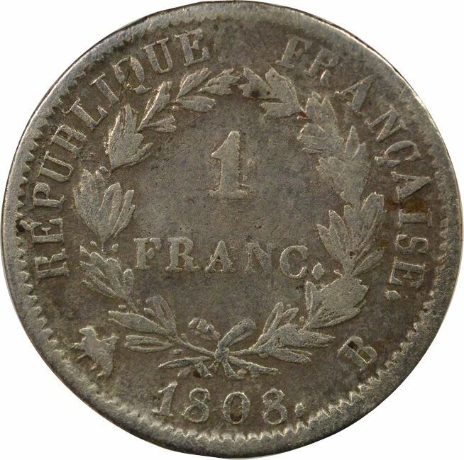 Pièce France Napoléon I - Franc Argent, Empire - 1808 B Rouen