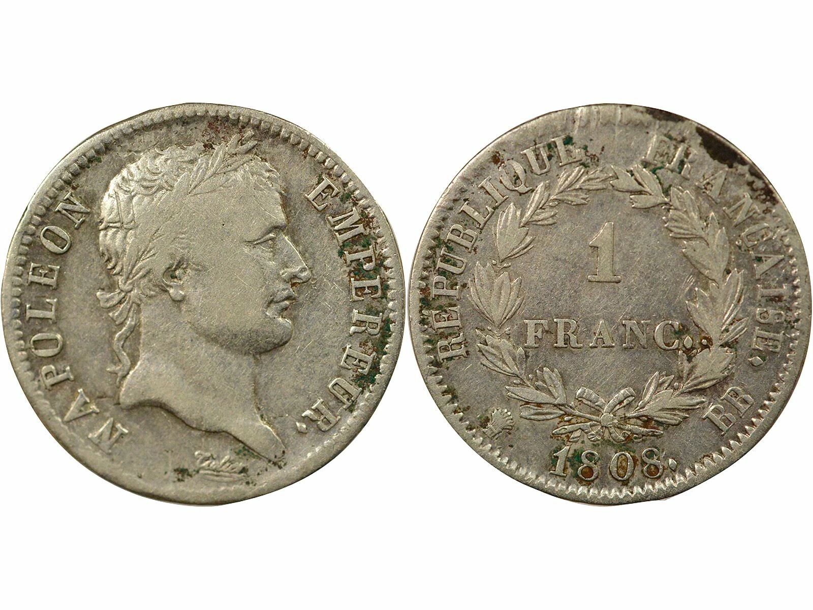 Pièce France Napoléon I - Franc Argent, Tête laurée, République - 1808 BB Strasbourg
