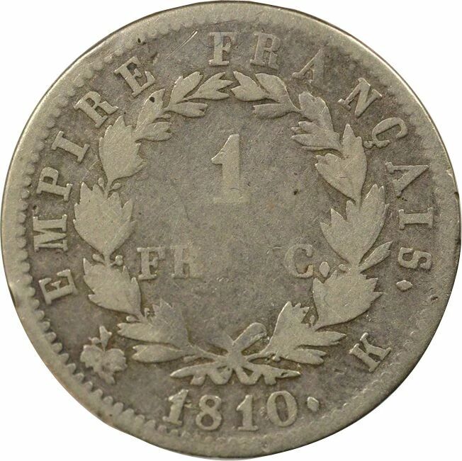 Coin France Napoleon I - Silver Franc, Empire - 1810 K Bordeaux