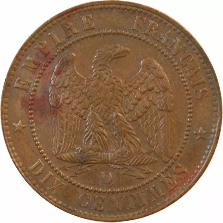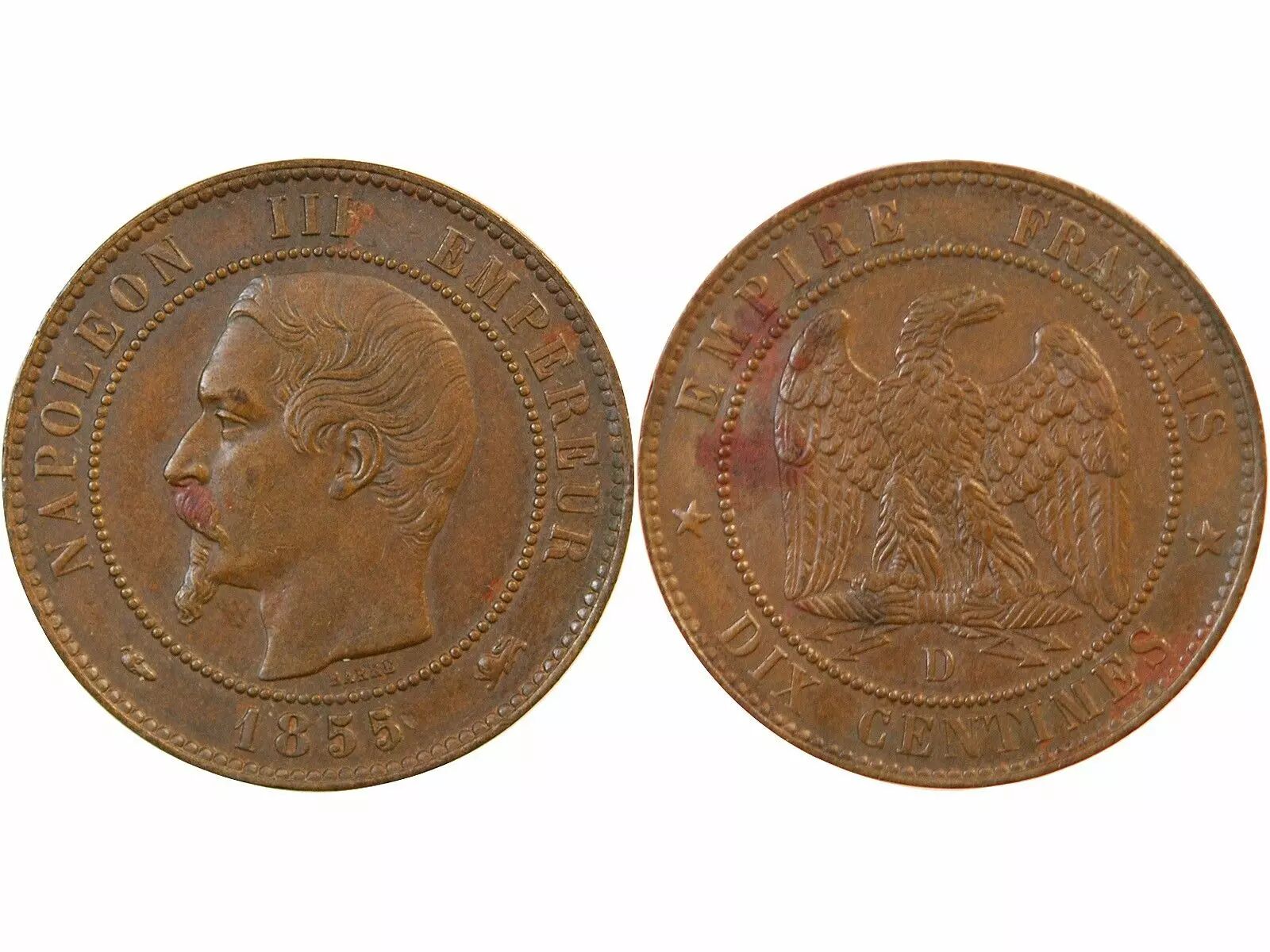 Pièce France Napoléon III - 10 Centimes 1855 D Lyon - Variété Chien