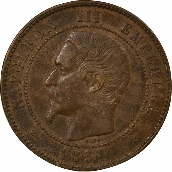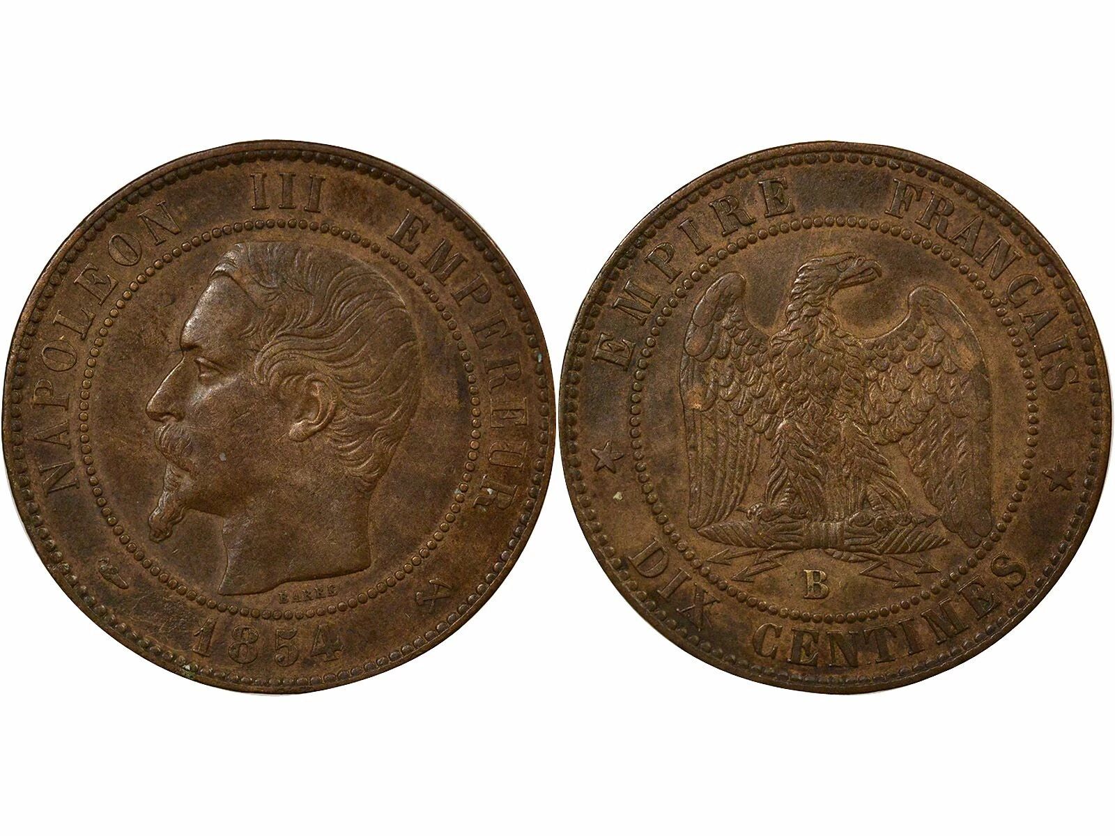 Pièce France Napoléon III - 10 Centimes, Tête nue - 1854 B Rouen