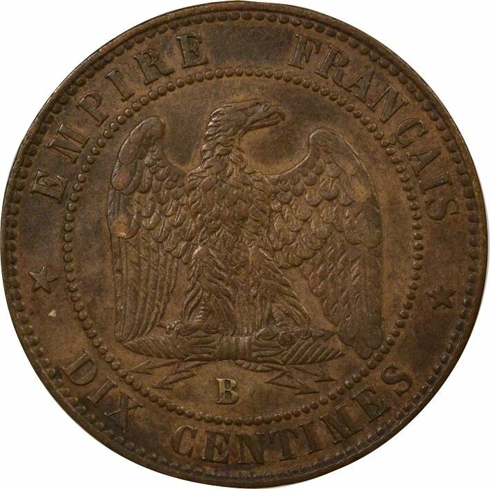 Coin France Napoleon III - 10 Cents, Bare Head - 1854 B Rouen