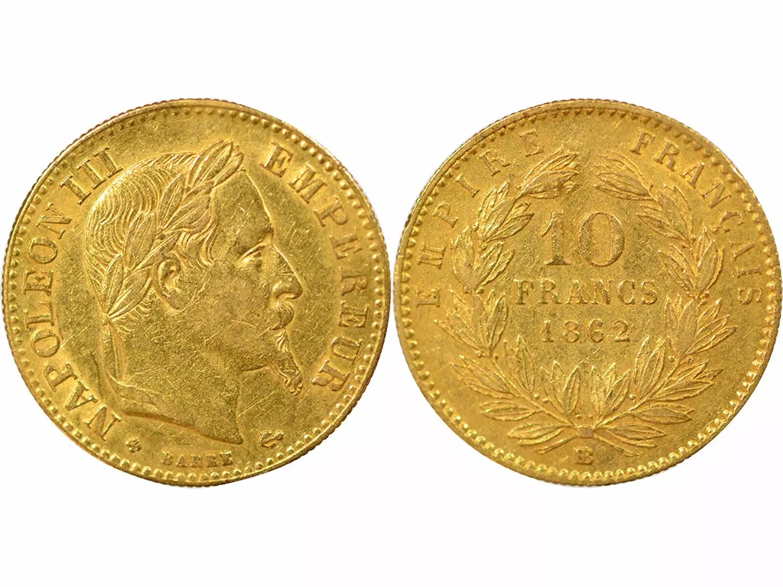 Pièce France Napoléon III - 10 Francs Or, Tête Laurée, Grand 10 - 1862 BB Strasbourg