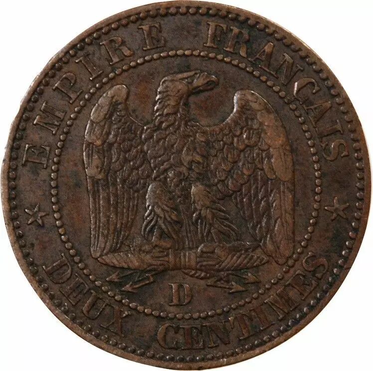 Pièce France Napoléon III - 2 Centimes 1857 D Lyon - Ancre Petit Lion