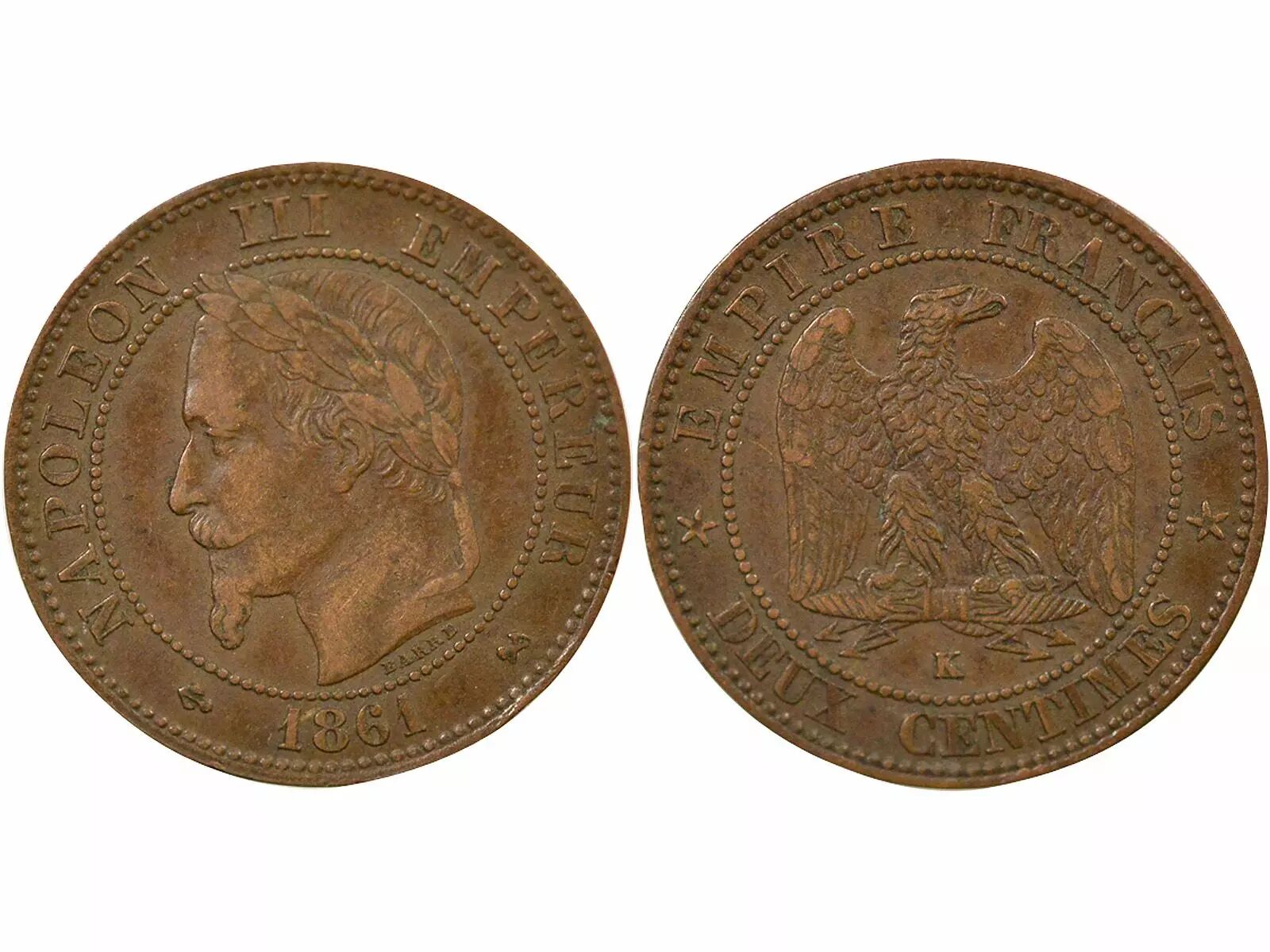 Pièce France Napoléon III - 2 Centimes 1861 K Bordeaux