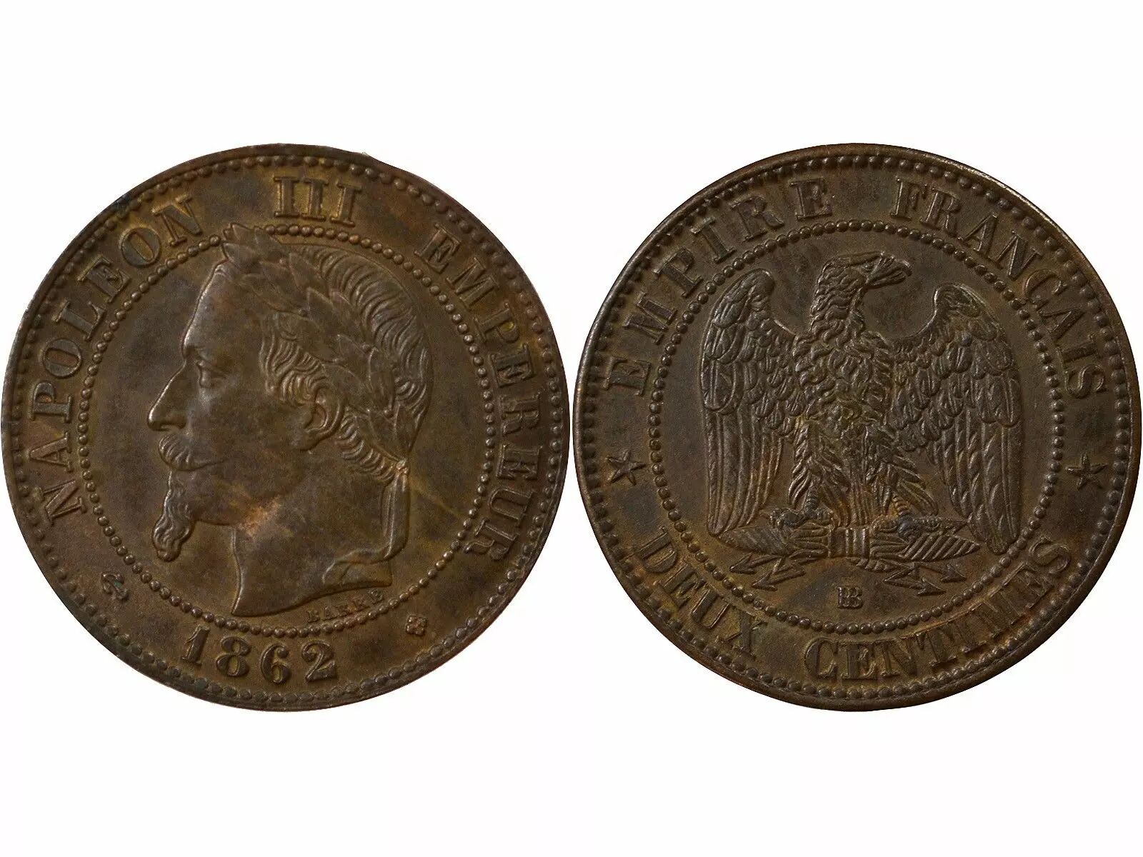 Pièce France Napoléon III - 2 Centimes 1862 BB Strasbourg