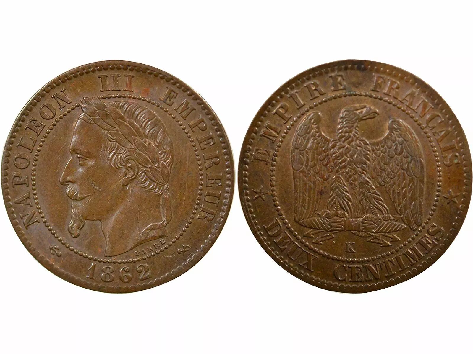 Pièce France Napoléon III - 2 Centimes 1862 K Bordeaux