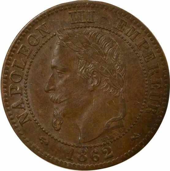 Home > French coins (470 à 2002) > Modern Currencies (1789 to 2002) > 2 centimes > France Napoleon III - 2 Centimes, Laureate Head - 1862 K Bordeaux