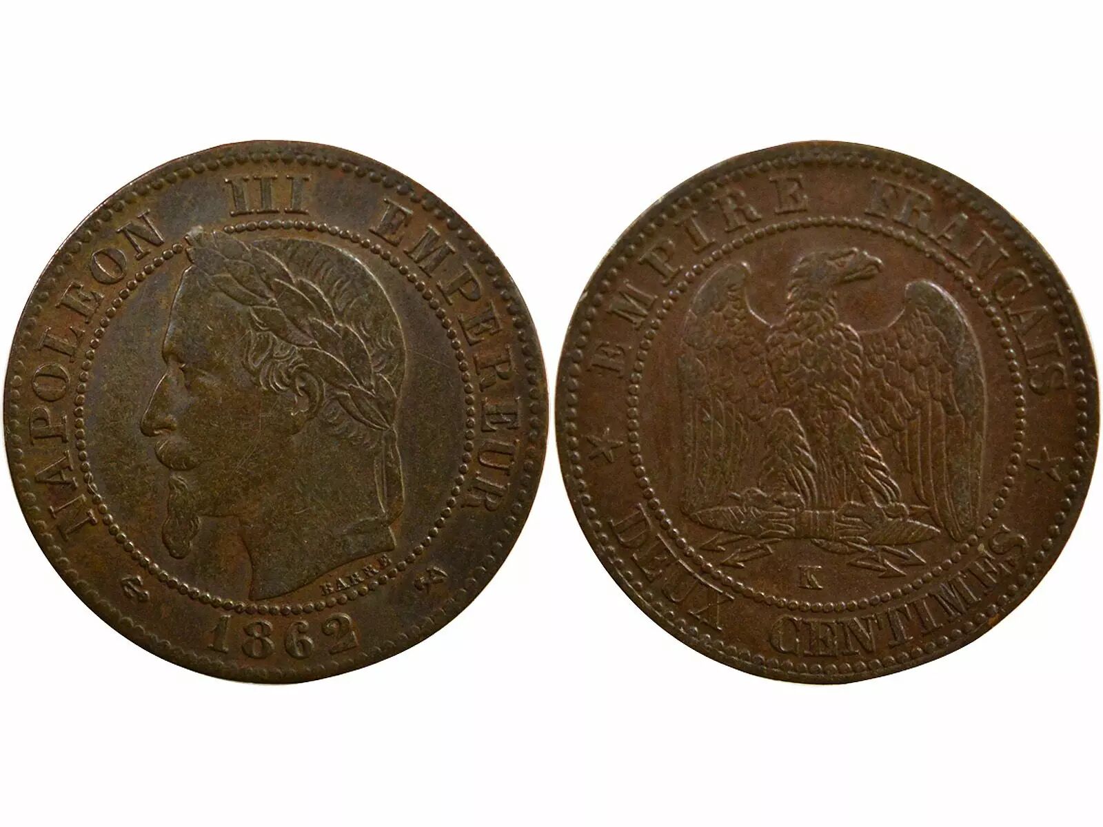 Coin France Napoléon III - 2 Cents 1862 K Bordeaux
