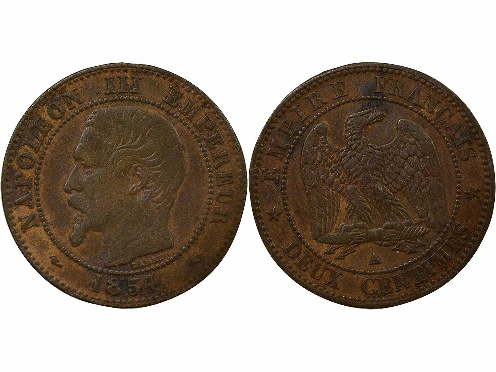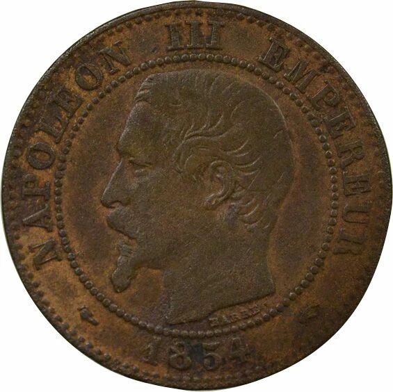 Home > French coins (470 à 2002) > Modern Currencies (1789 to 2002) > 2 centimes > France Napoleon III - 2 Cents, Bare Head - 1854 A Paris