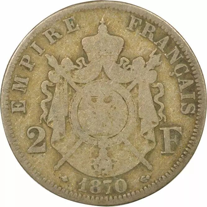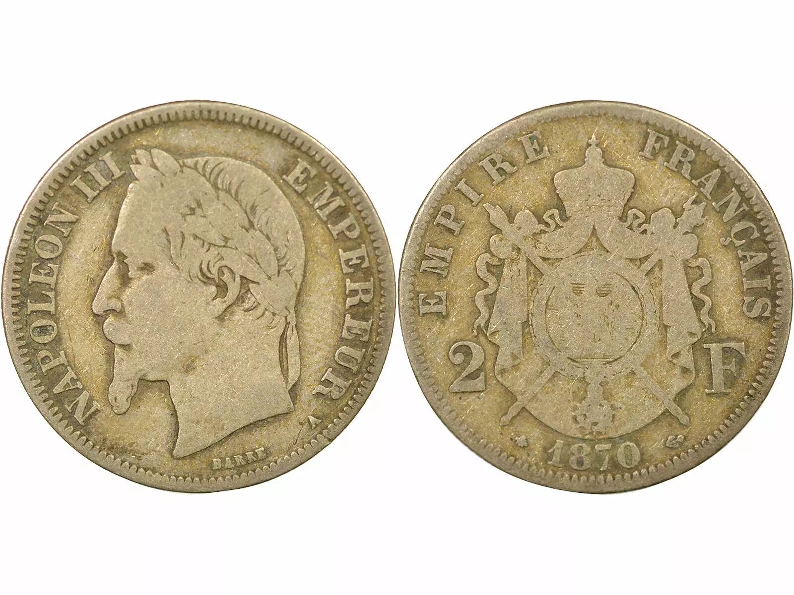Pièce France Napoléon III - 2 Francs Argent, Tête laurée - 1870 A Paris