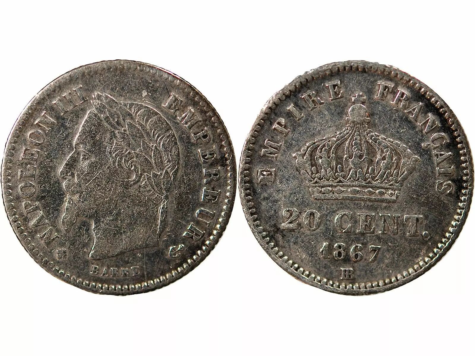 Accueil > Monnaies françaises (470 à 2002) > Monnaies Modernes (1789 à 2002) > 20 centimes > France Napoléon III - 20 Centimes Argent 1867 BB Strasbourg