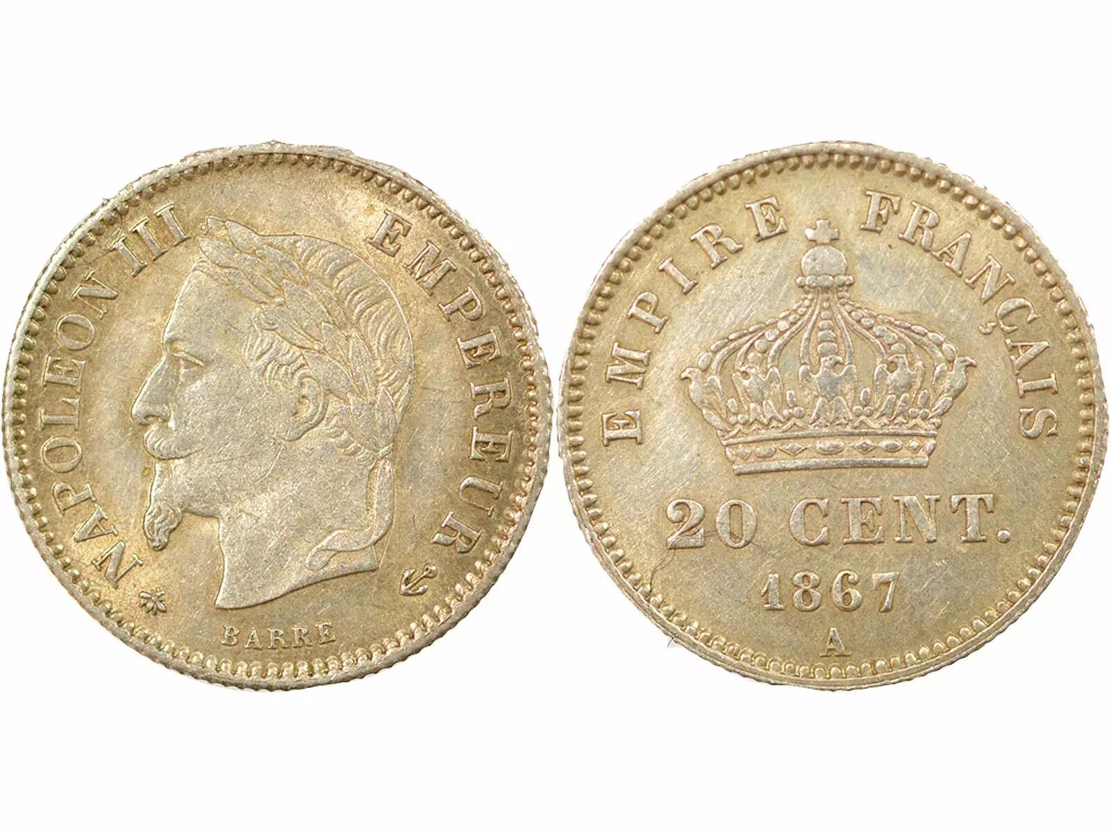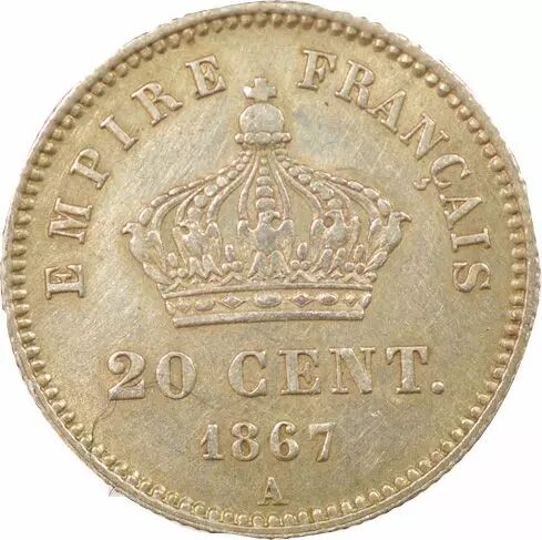 Home > French coins (470 à 2002) > Modern Currencies (1789 to 2002) > 20 Cents > France Napoleon III - 20 Silver Centimes , Big Diameter - 1867 A Paris
