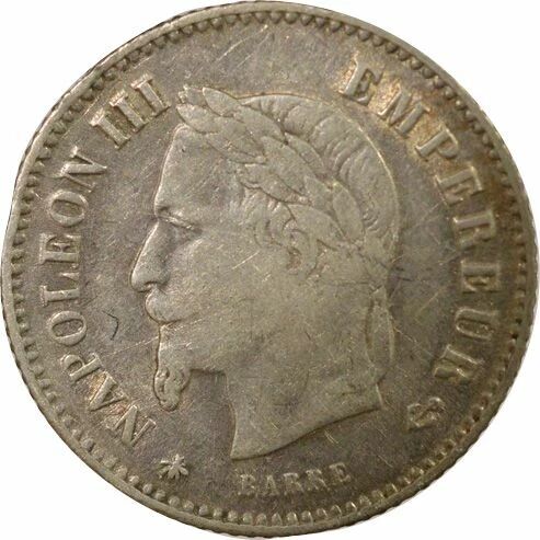 Home > French coins (470 à 2002) > Modern Currencies (1789 to 2002) > 20 Cents > France Napoleon III - 20 Silver Centimes , Big Diameter - 1867 A Paris