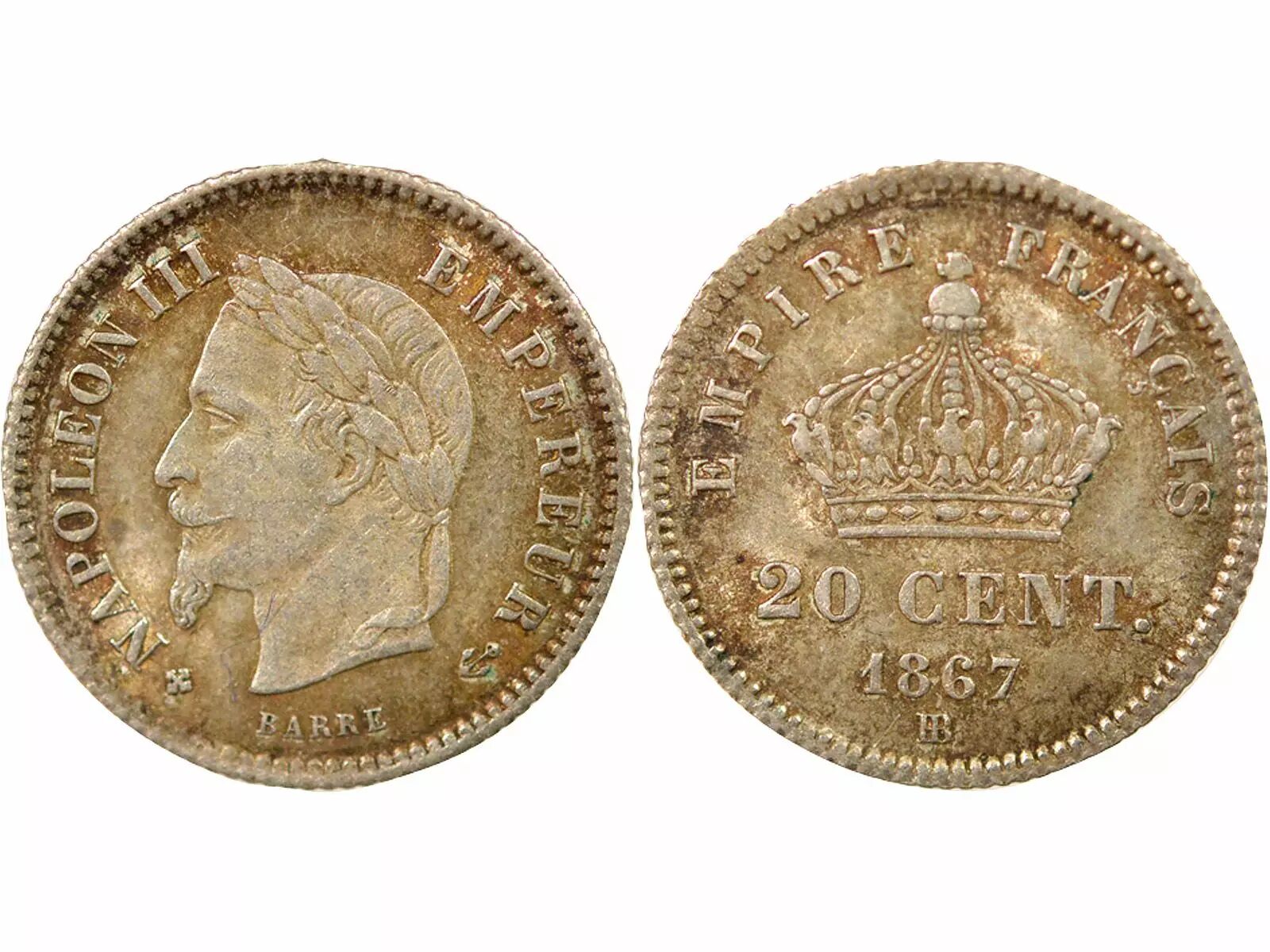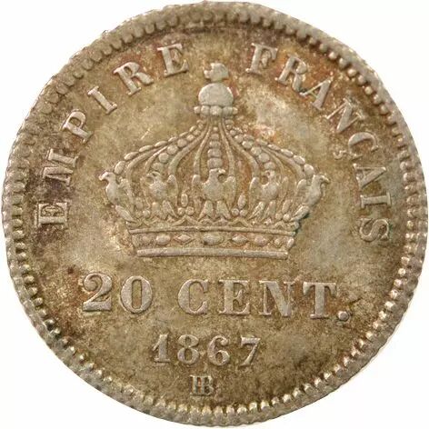 Home > > France Napoleon III - 20 Silver Centimes , Big Diameter - 1867 BB Strasbourg