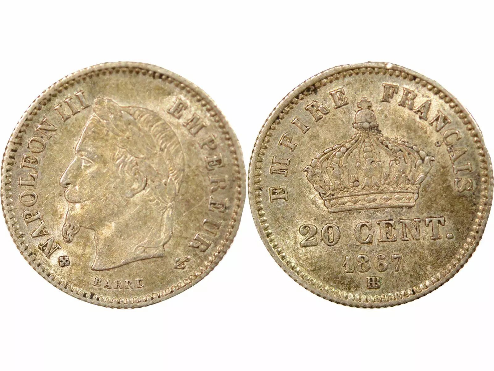 Home > French coins (470 à 2002) > Modern Currencies (1789 to 2002) > 20 Cents > France Napoleon III - 20 Silver Centimes , Big Diameter - 1867 BB Strasbourg