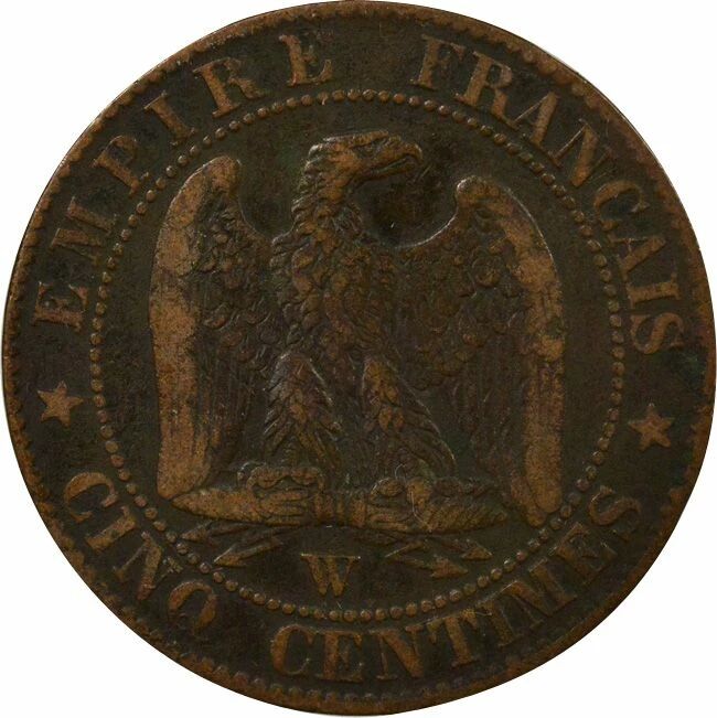 Pièce France Napoléon III - 5 Centimes, Tête nue - 1855 W Lille