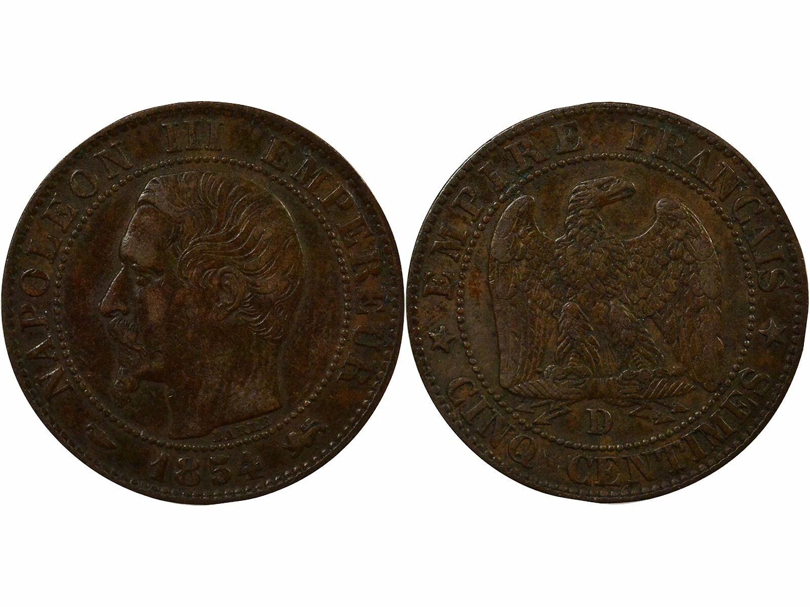 Coin France Napoleon III - 5 Cents, Bare Head - 1854 D Lyon
