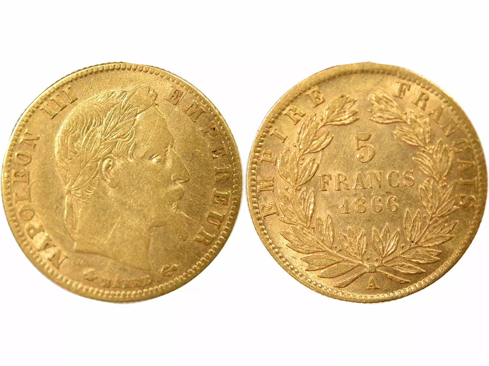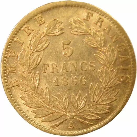 Coin France Napoleon III - 5 Gold Francs, Laureate Head - 1866 A Paris