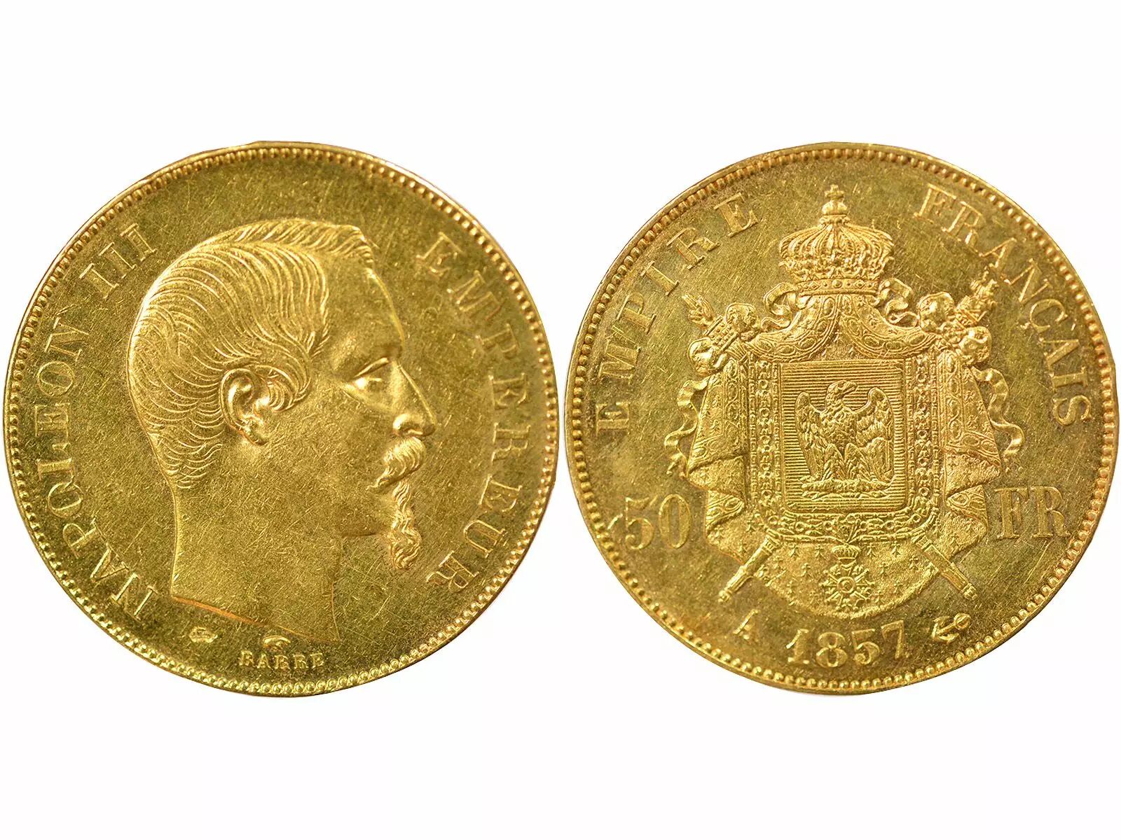 Pièce France Napoléon III - 50 Francs Or, Tête nue - 1857 A Paris