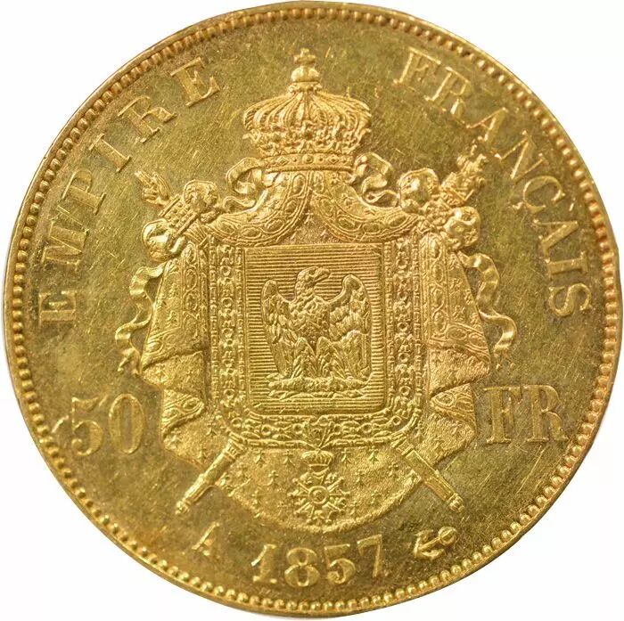 Accueil > Archivage > archivage-Monnaies françaises (470 à 2002) > France Napoléon III - 50 Francs Or, Tête nue - 1857 A Paris