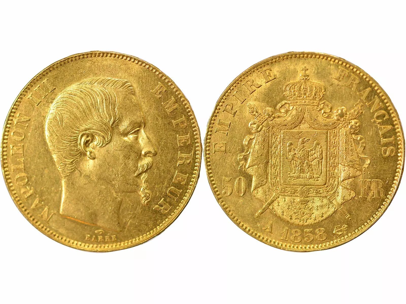 Pièce France Napoléon III - 50 Francs Or, Tête nue - 1858 A Paris