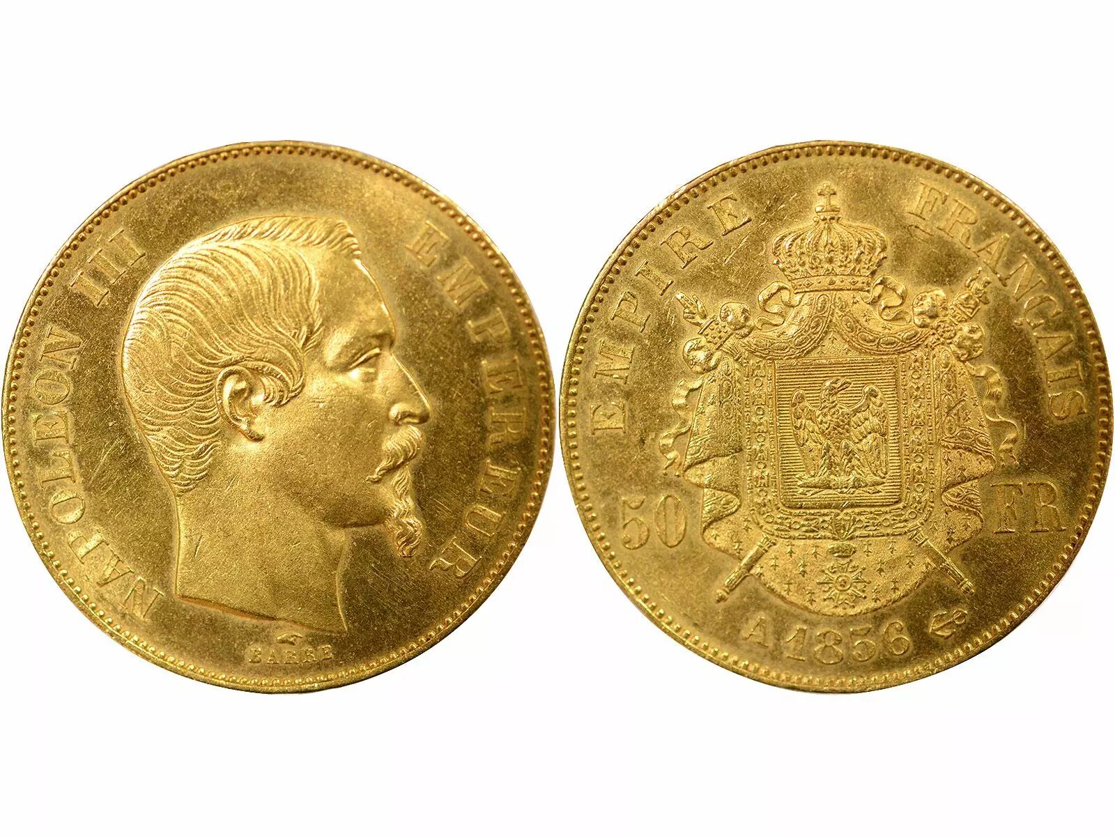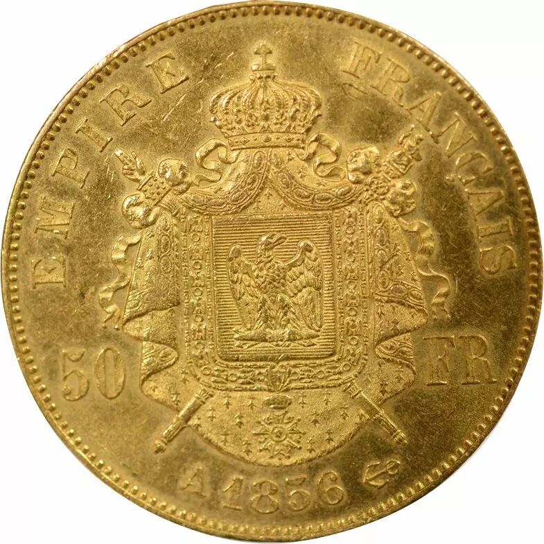 Home > > France Napoleon III - 50 Gold Francs, Bare Head - 1856 A Paris