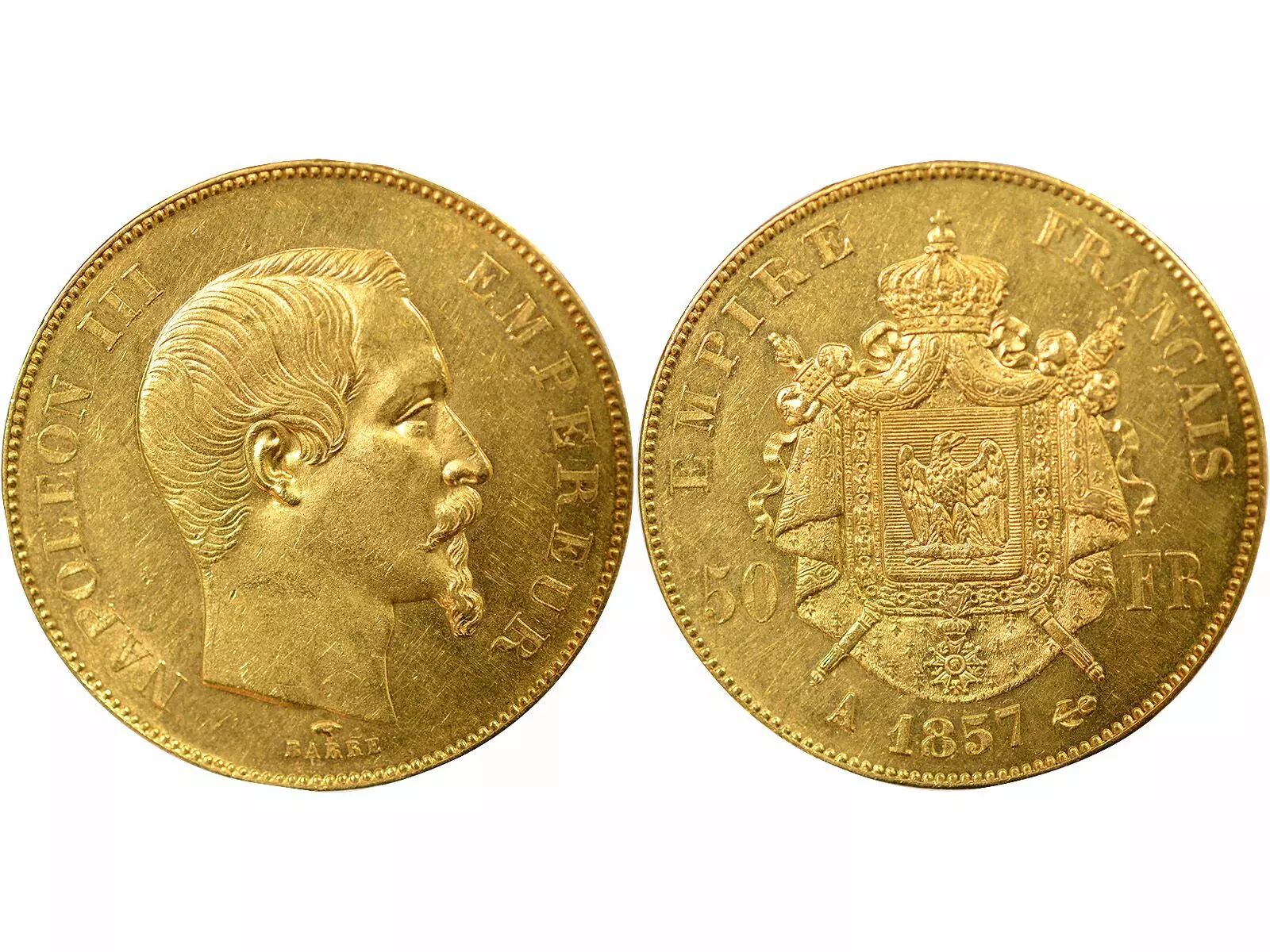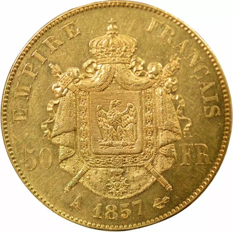 Home > > France Napoleon III - 50 Gold Francs, Bare Head - 1857 A Paris