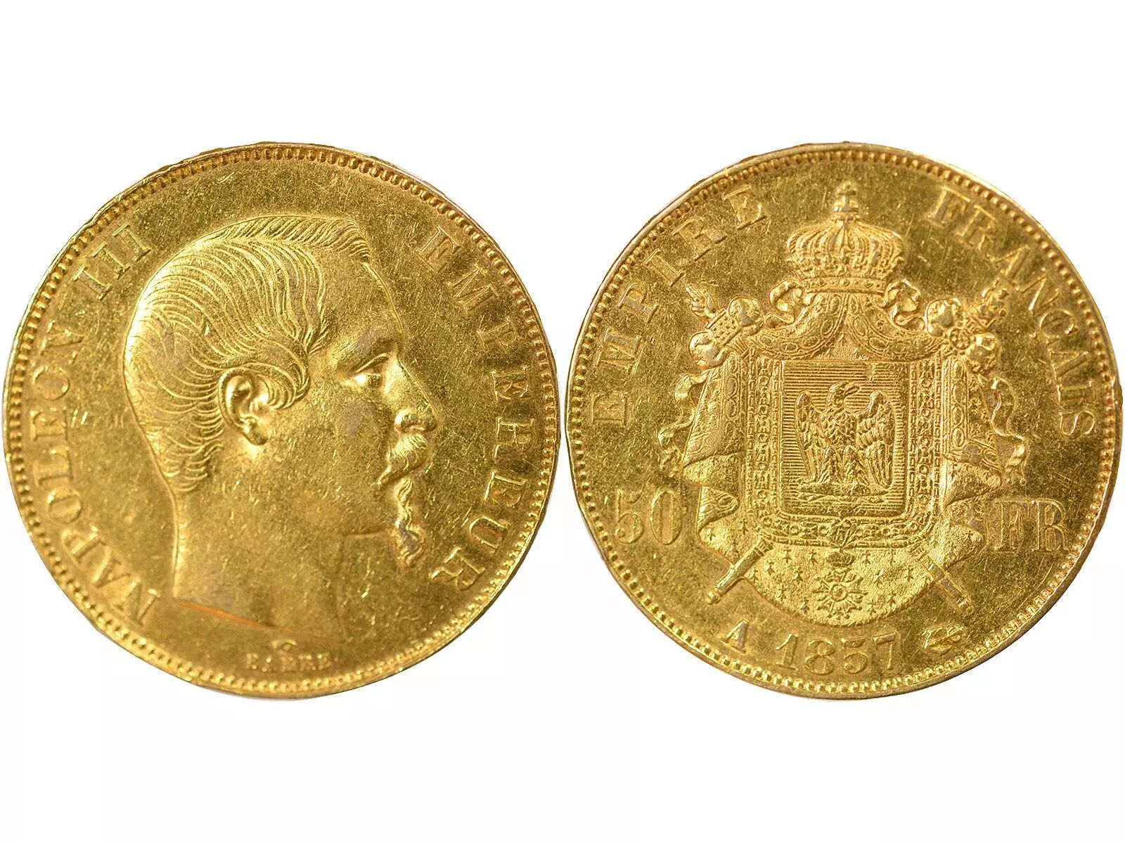 Coin France Napoleon III - 50 Gold Francs, Bare Head - 1857 A Paris