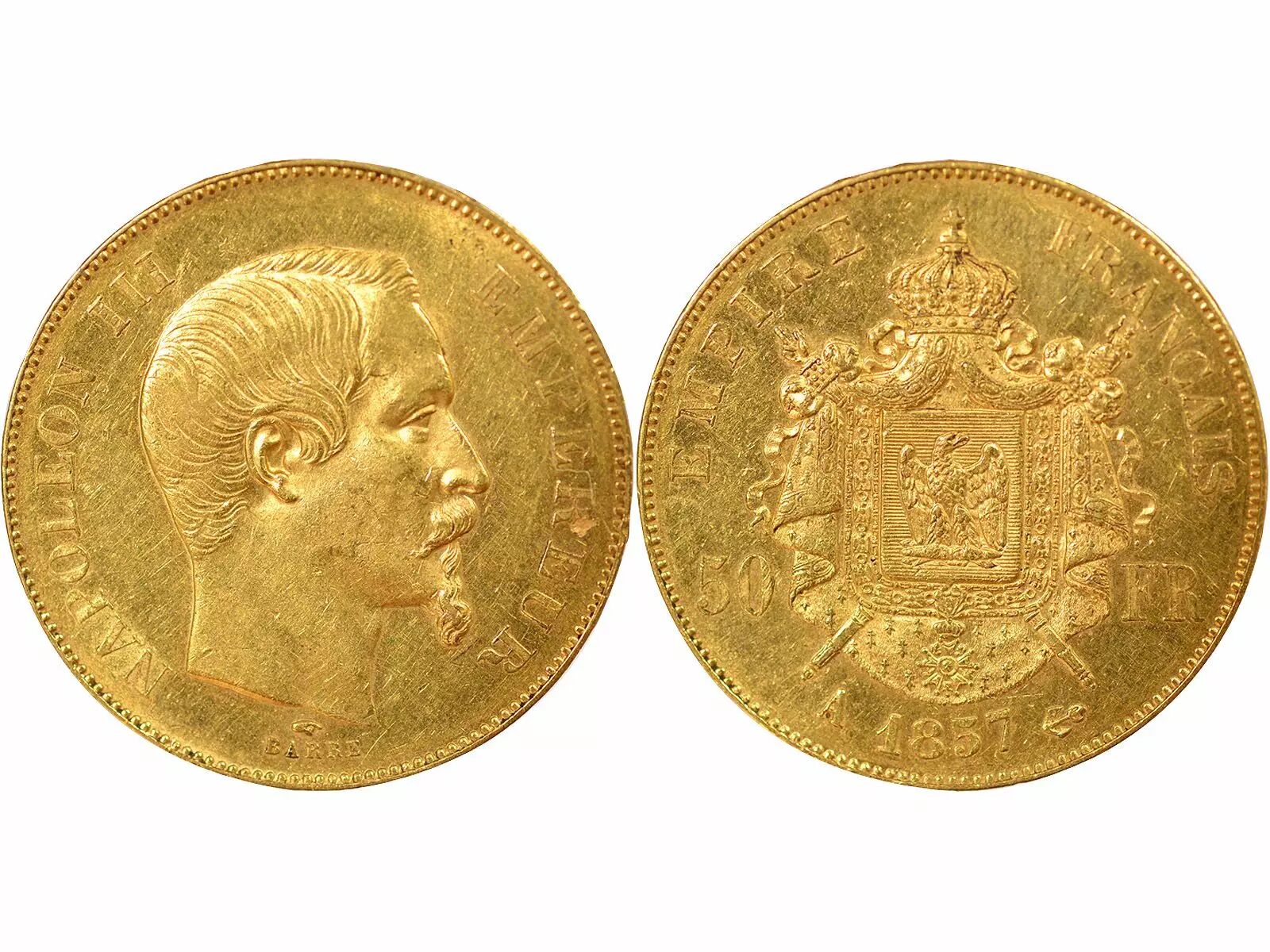 Coin France Napoleon III - 50 Gold Francs, Bare Head - 1857 A Paris