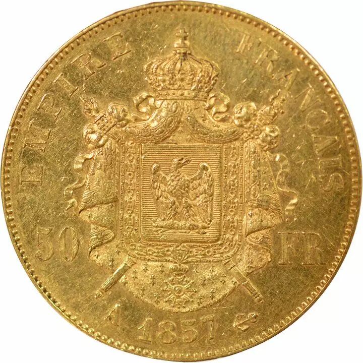Home > > France Napoleon III - 50 Gold Francs, Bare Head - 1857 A Paris