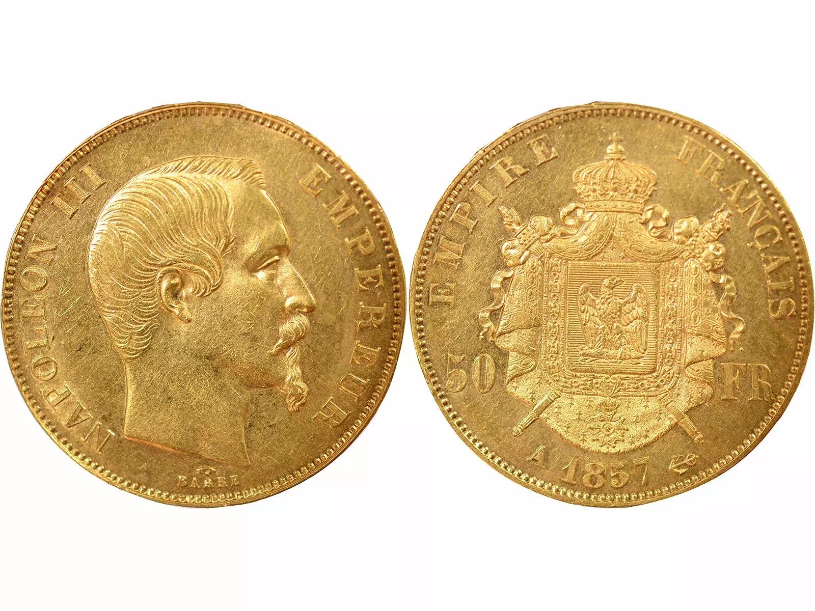 Coin France Napoleon III - 50 Gold Francs, Bare Head - 1857 A Paris