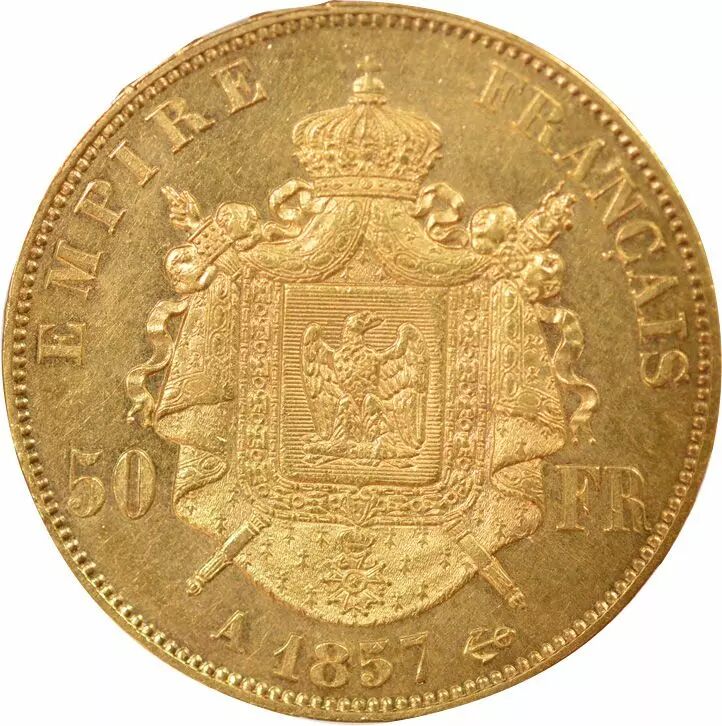 Home > > France Napoleon III - 50 Gold Francs, Bare Head - 1857 A Paris