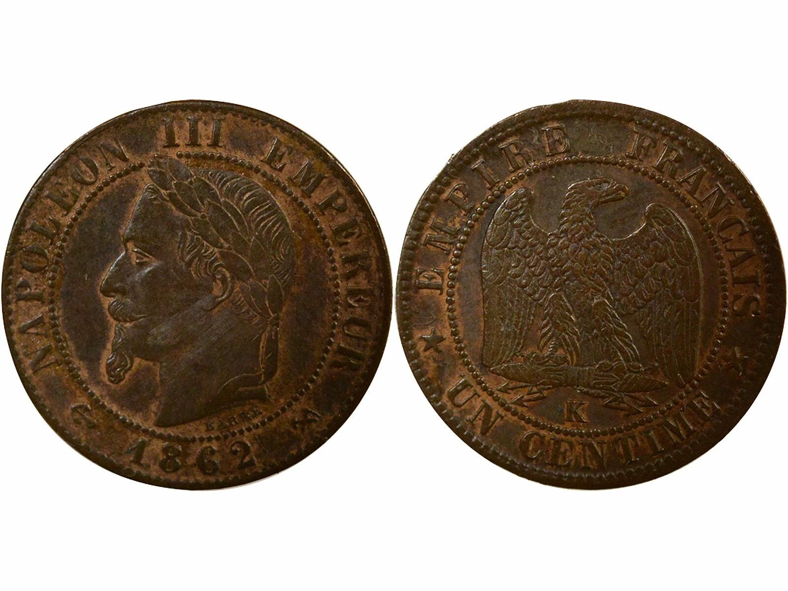 Home > French coins (470 à 2002) > Modern Currencies (1789 to 2002) > 1 Centime > France Napoleon III - Cent, Laureate Head - 1862 A Paris
