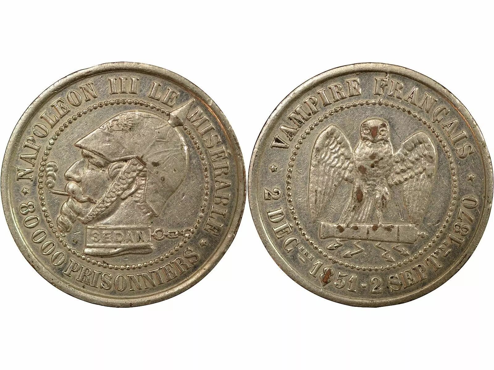 Accueil > Monnaies françaises (470 à 2002) > Monnaies Modernes (1789 à 2002) > France Napoléon III, Defaite De Sedan - Jeton Bronze Plaque Argent - 1870