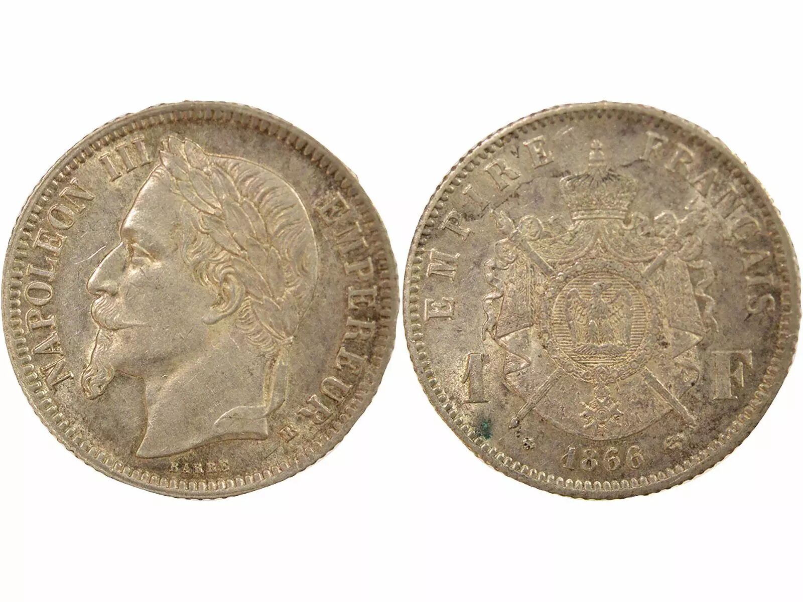 Pièce France Napoléon III - Franc Argent, Tête Laurée - 1866 A Paris