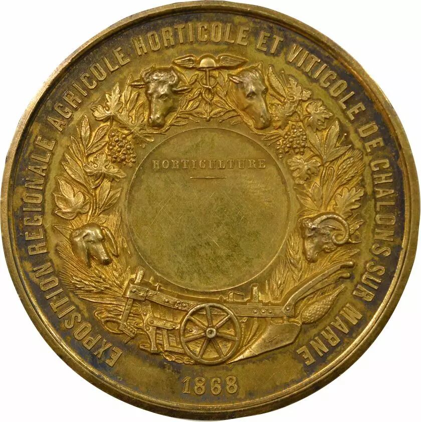 Revers : EXPOSITION REGIONALE AGRICOLE HORTICOLE ET VITICOLE DE CHALONS SUR MARNE / HORTICULTURE / 1868