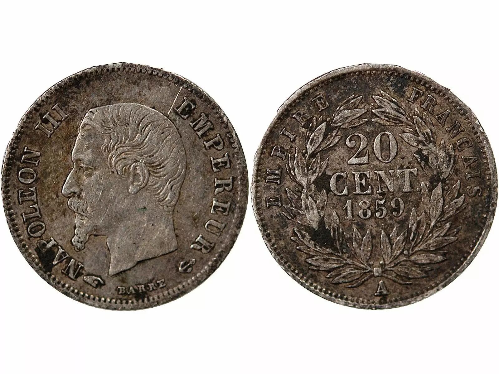 Pièce France Napoléon III, Tête Nue - 20 Centimes Argent 1859 A Paris