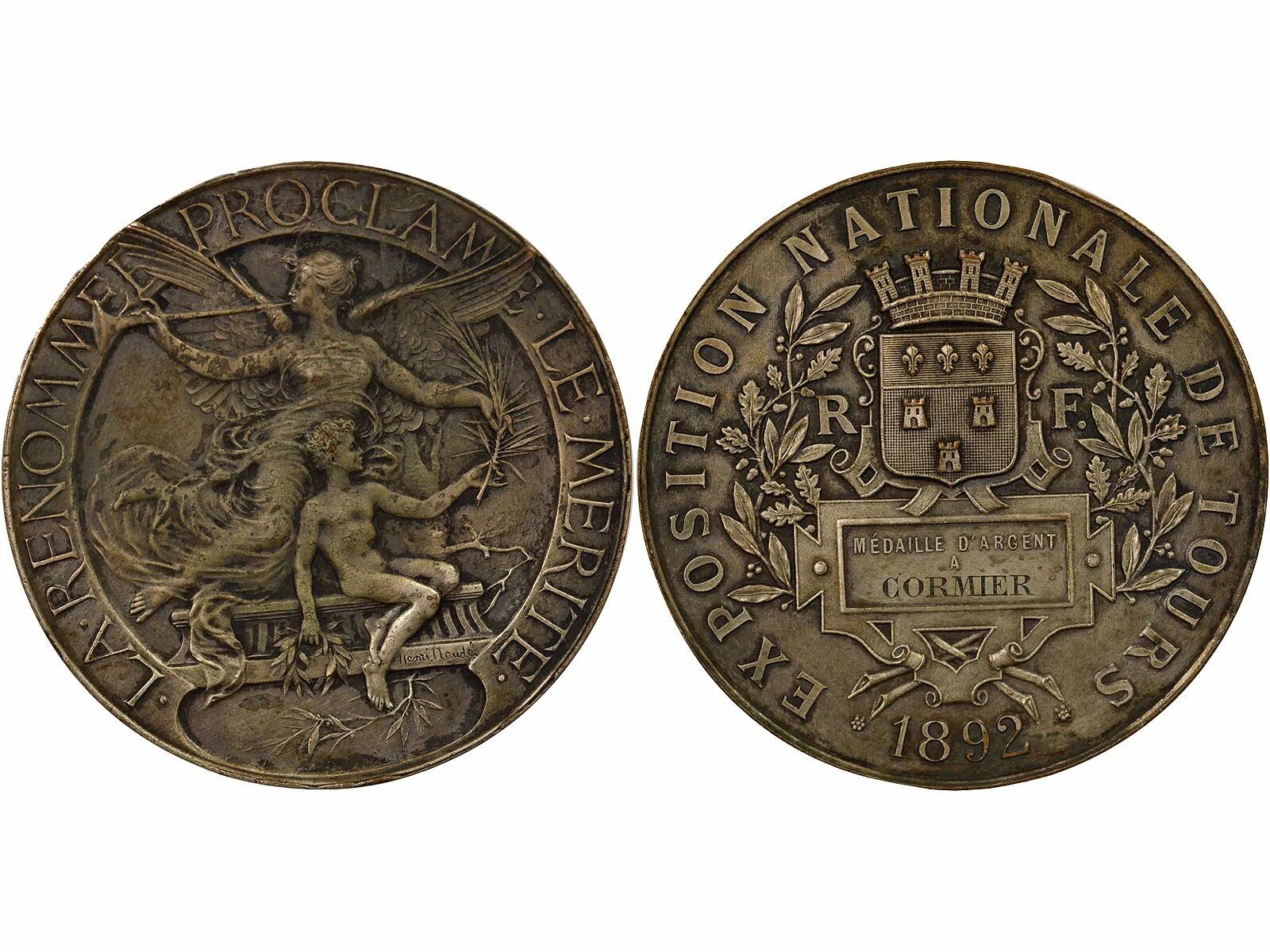 Reverse : EXPOSITION NATIONALE DE TOURS / * 1892 * / MEDAILLE D'ARGENT / A / CORMIER
