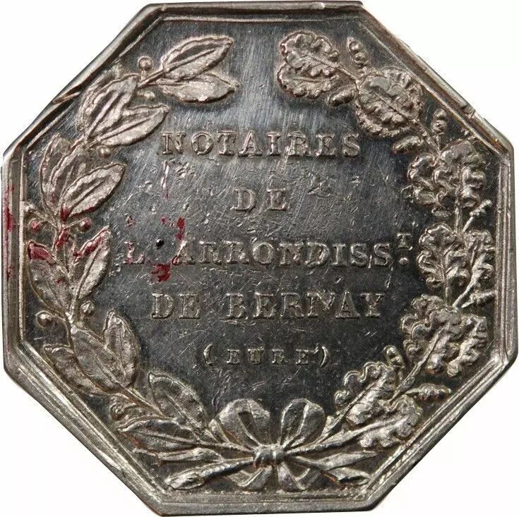 Accueil > Jetons Médailles Décorations > Jetons ( depuis 1600 ) > France Notaires, Bernay - Jeton Argent Poinçon Abeille (1845-1860)