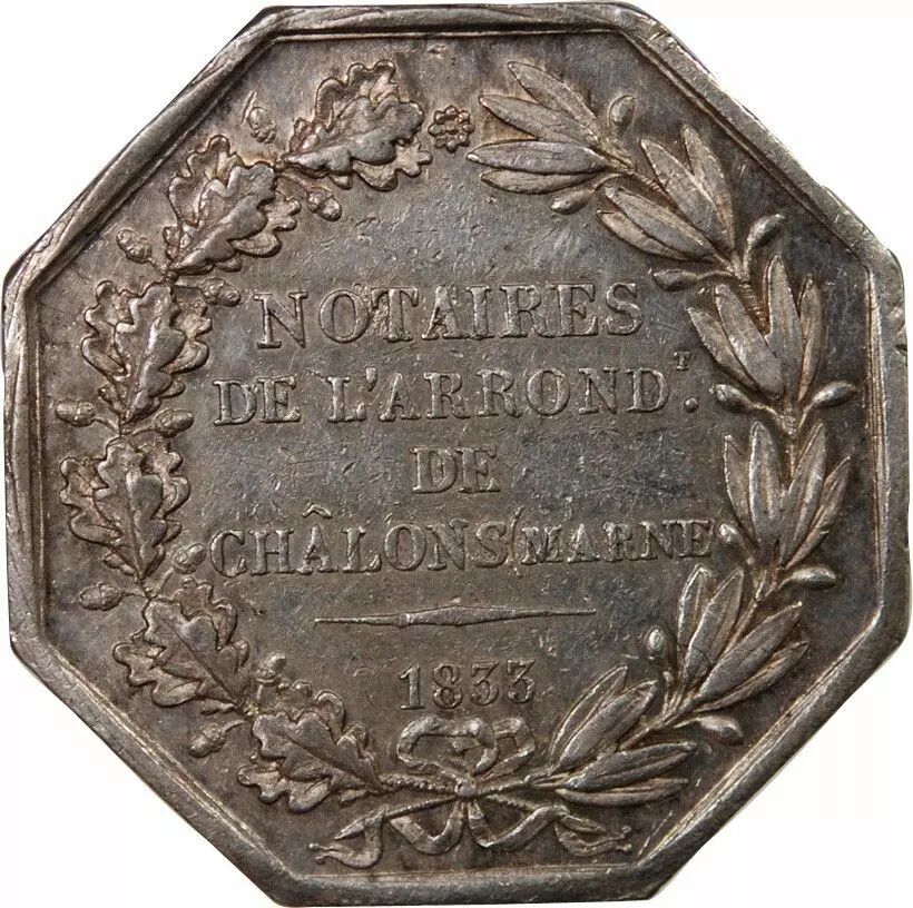 Accueil > Jetons Médailles Décorations > Jetons ( depuis 1600 ) > France Notaires, Chalons-Sur-Marne - Jeton Argent Poinçon Corne (Après 1879)