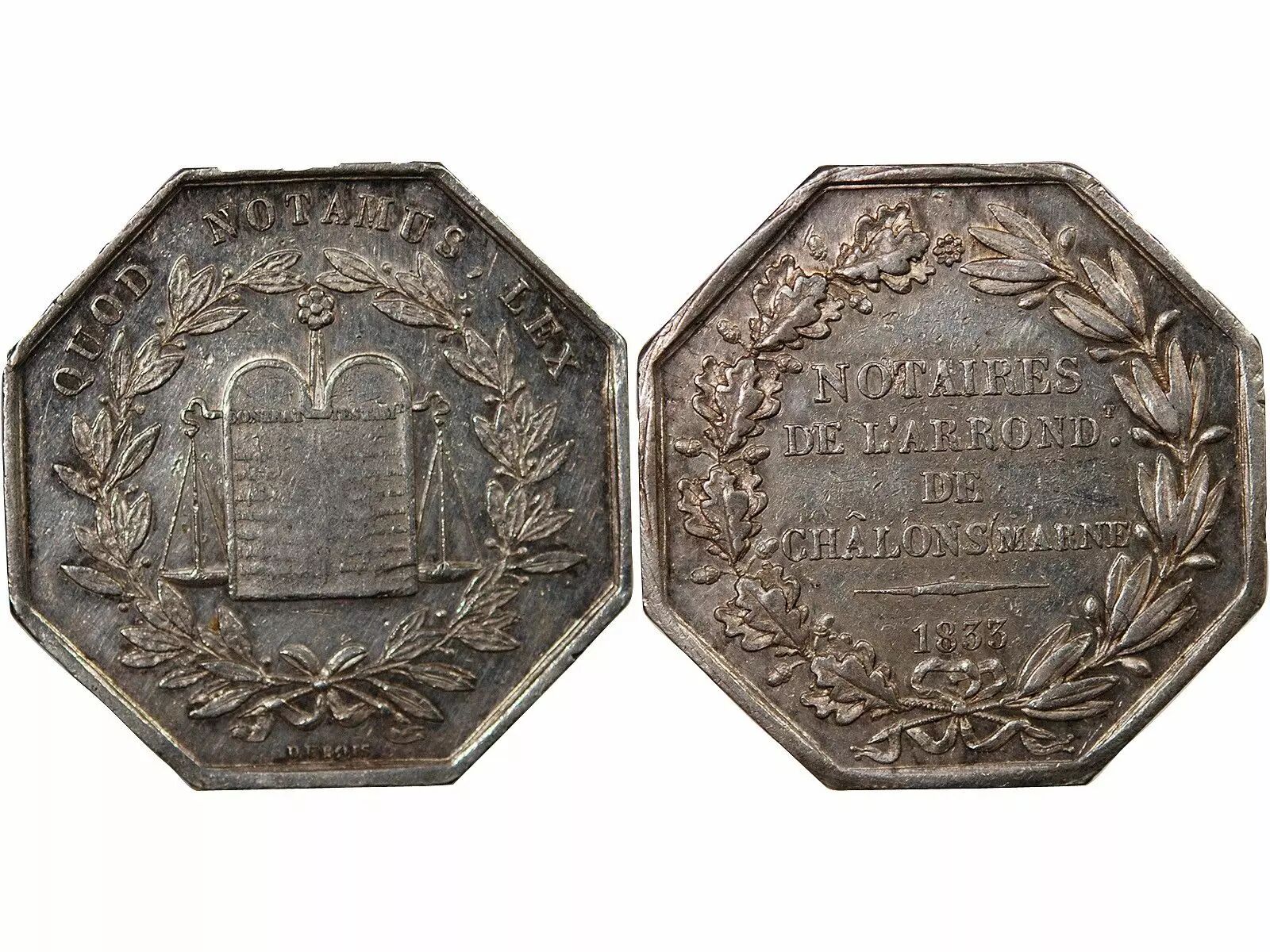 France Notaires, Chalons-Sur-Marne - Jeton Argent Poinçon Corne (Après 1879)