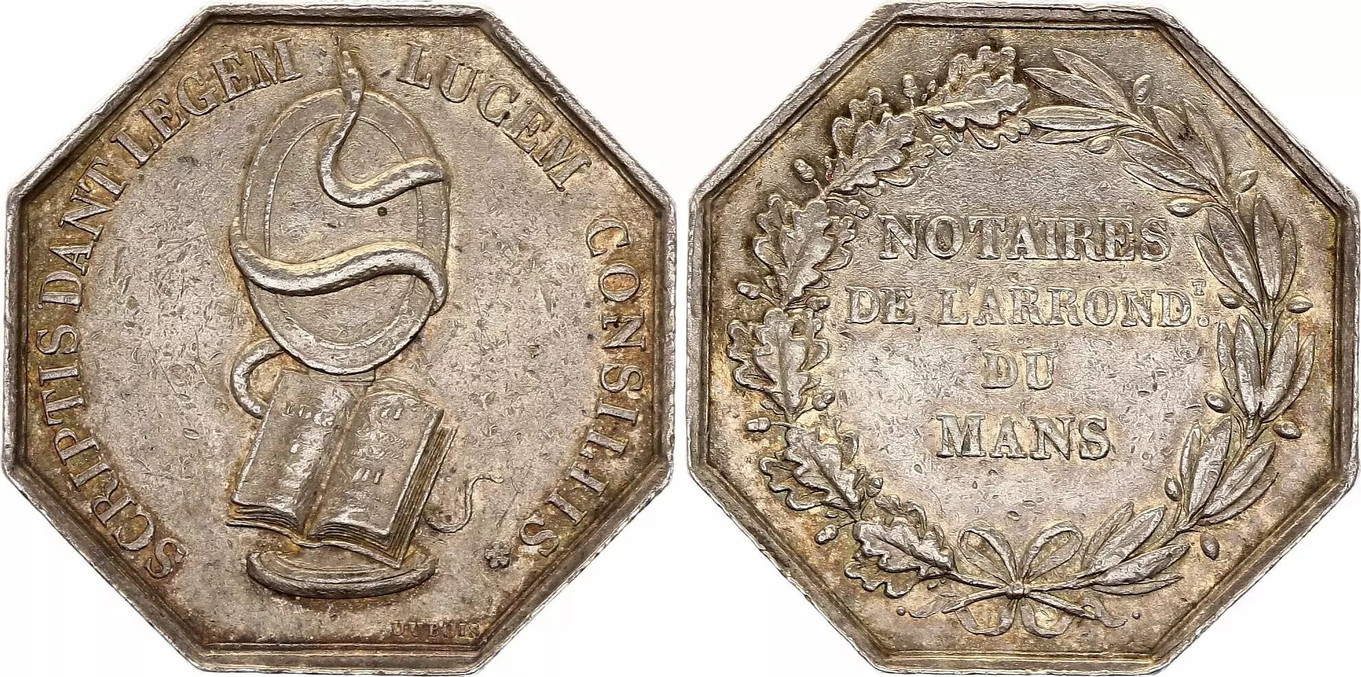 Accueil > Jetons Médailles Décorations > Jetons ( depuis 1600 ) > France Notaires - Le Mans - ND (1860-1879) - Argent