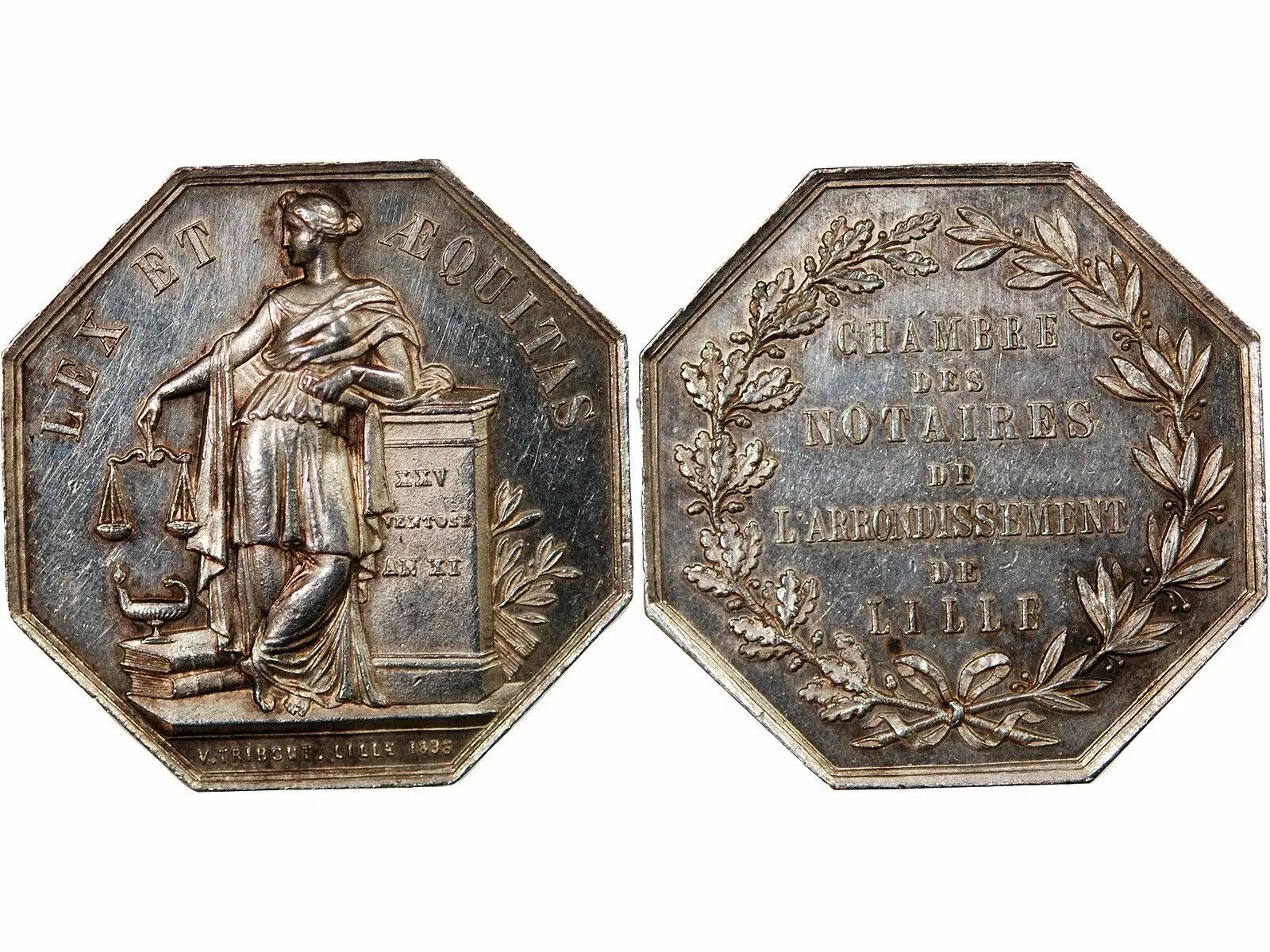 Accueil > Jetons Médailles Décorations > Jetons ( depuis 1600 ) > France Notaires, Lille - Jeton Argent Poinçon Corne (Après 1879)