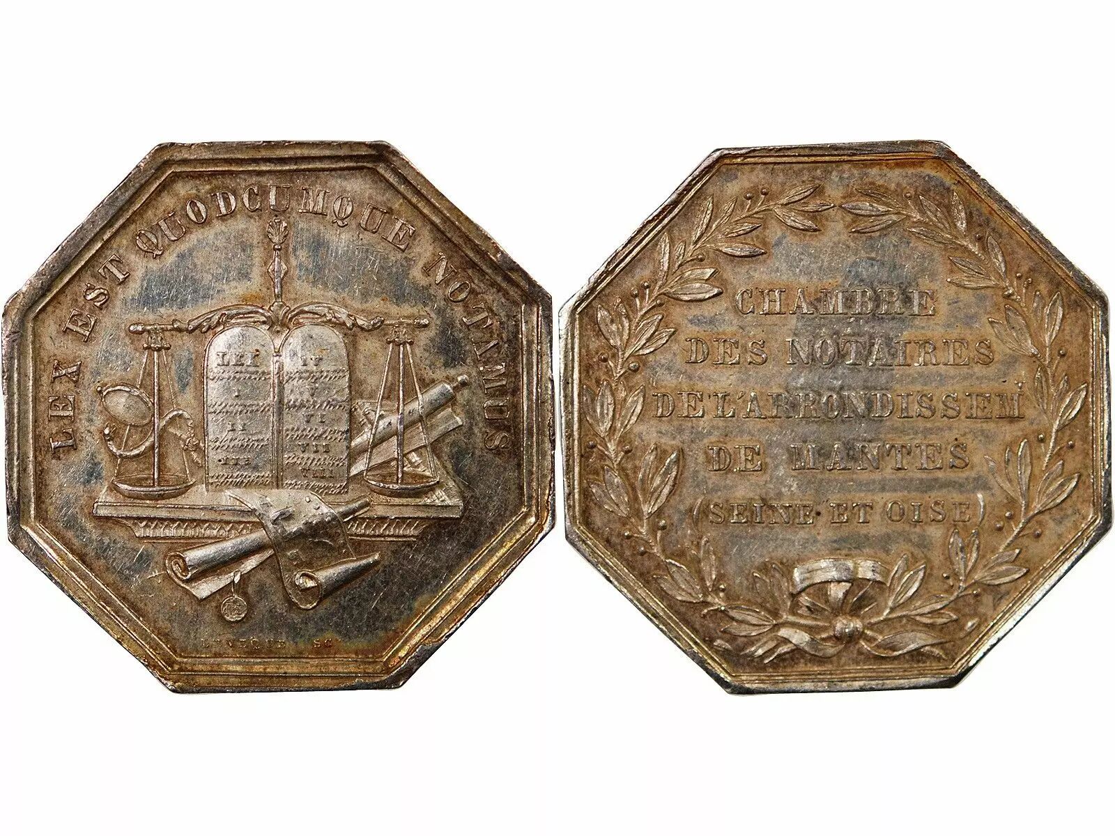 France Notaires, Mantes - Jeton Argent Poinçon Corne (Après 1879)