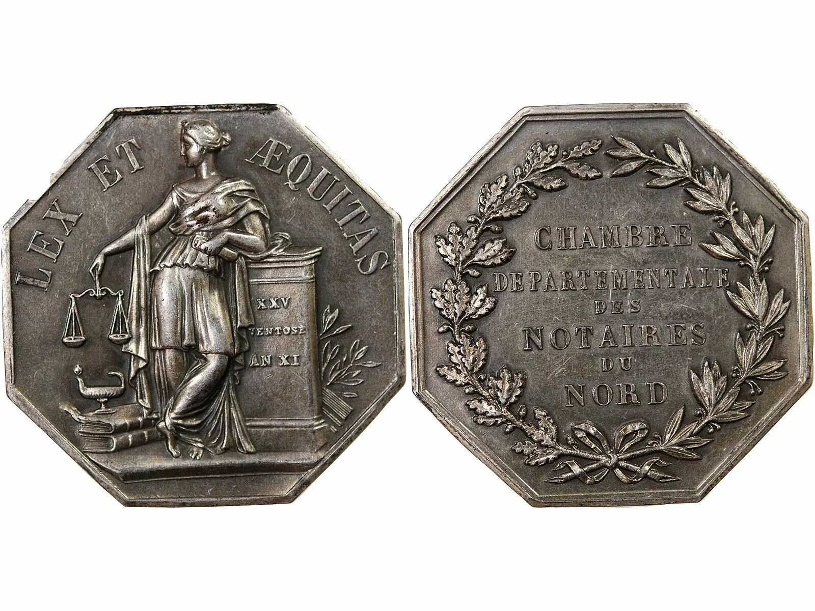 France Notaires, Nord - Jeton Argent Poinçon Corne (Après 1879)