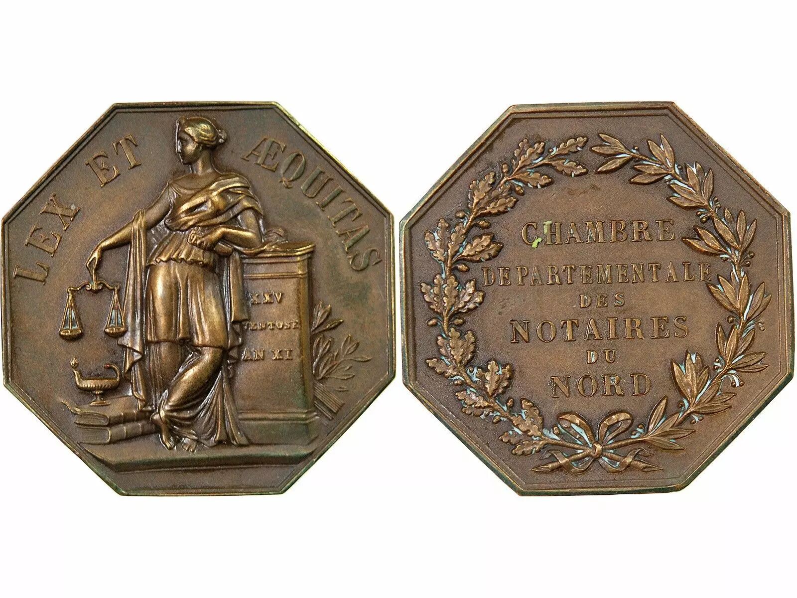 Accueil > Jetons Médailles Décorations > Jetons ( depuis 1600 ) > France Notaires, Nord - Jeton Bronze Poinçon Corne (Après 1879)