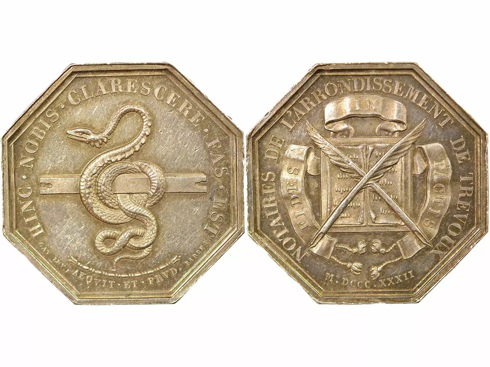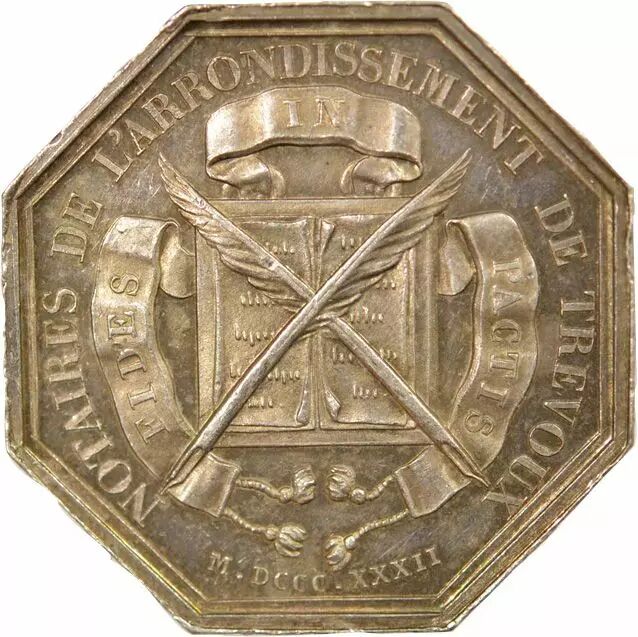 Accueil > Jetons Médailles Décorations > Jetons ( depuis 1600 ) > France Notaires, Trévoux - Jeton Argent - 1832 Corne (Ap. 1880)
